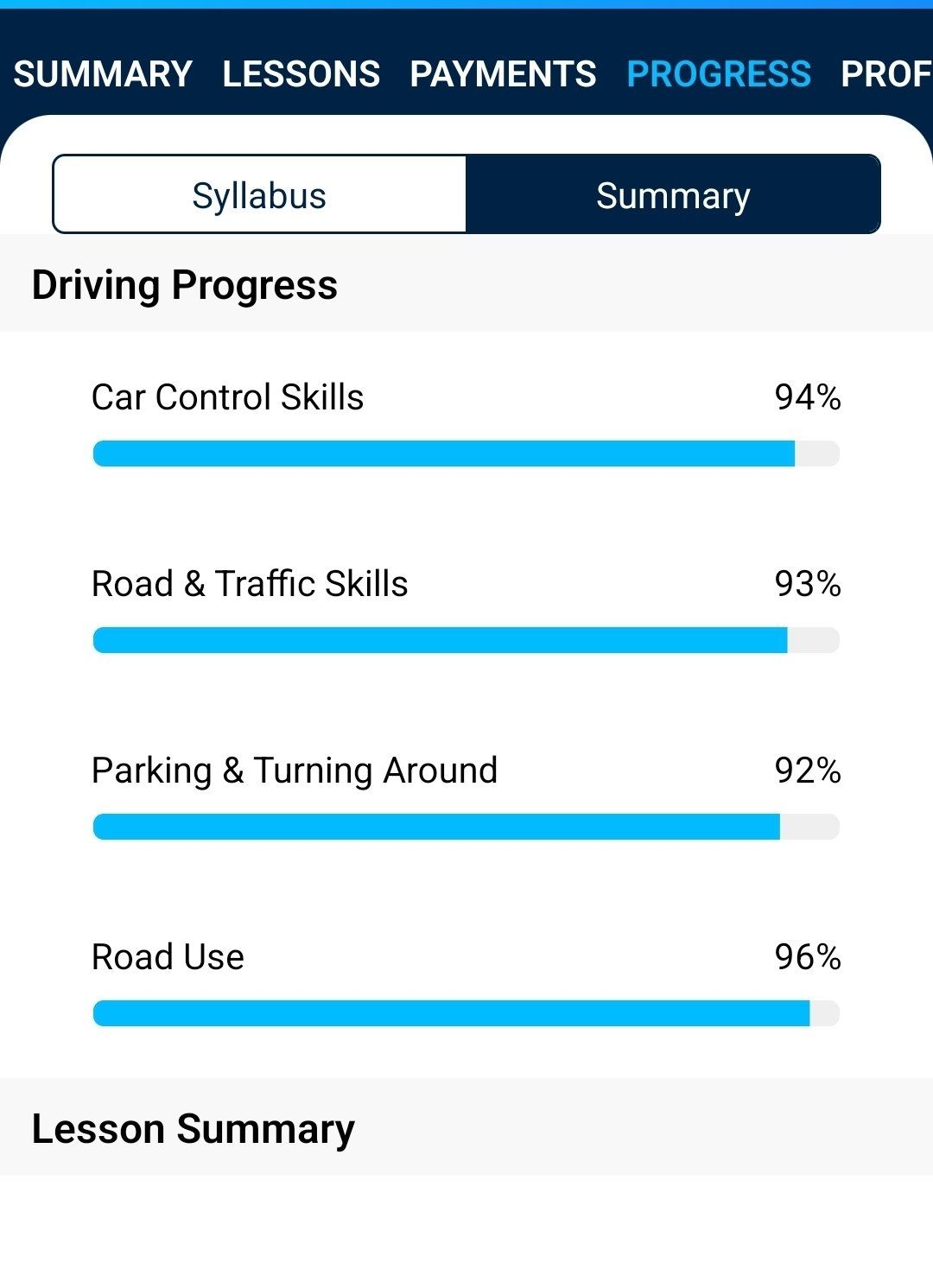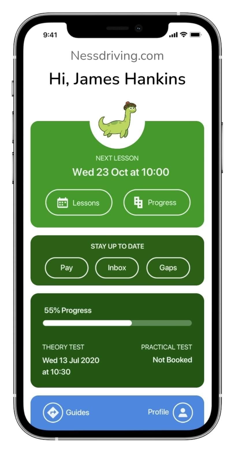 Every customer of ours receives free access to the Nessdriving Total Drive App. This allows you to seamlessly view your lesson appointments, track payments and lesson progress, as well as receive reminders about lesson appointments. You can also add notes and fill in reflective logs after each lesson.